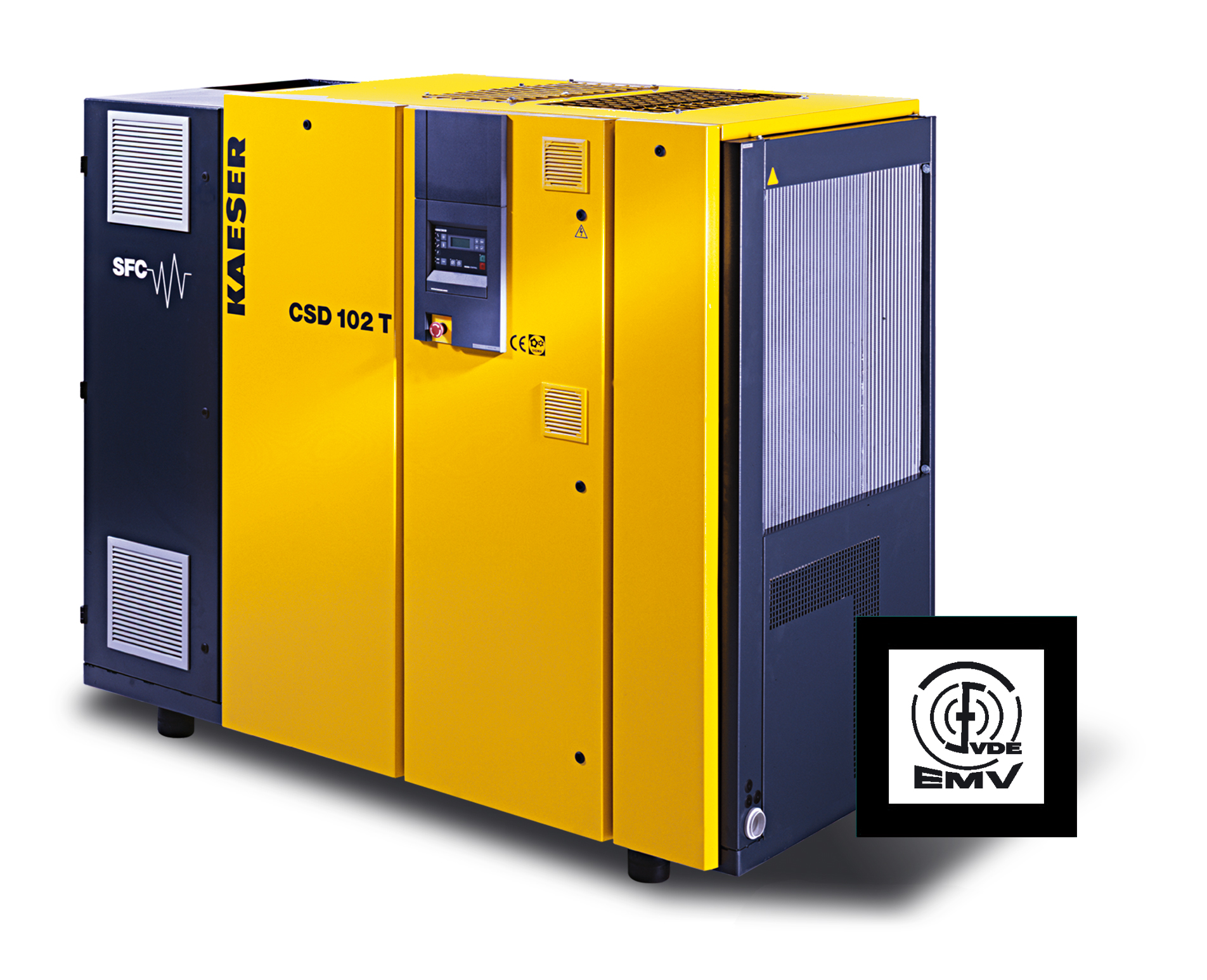 The VDE also regularly inspects production facilities at Kaeser who, as a result, is able to label its products accordingly. In addition to the CE symbol, applicable Kaeser products bear the VDE-EMV quality approval symbol which confirms that they have been tested in accordance with all relevant EMC regulations and are found to operate perfectly.