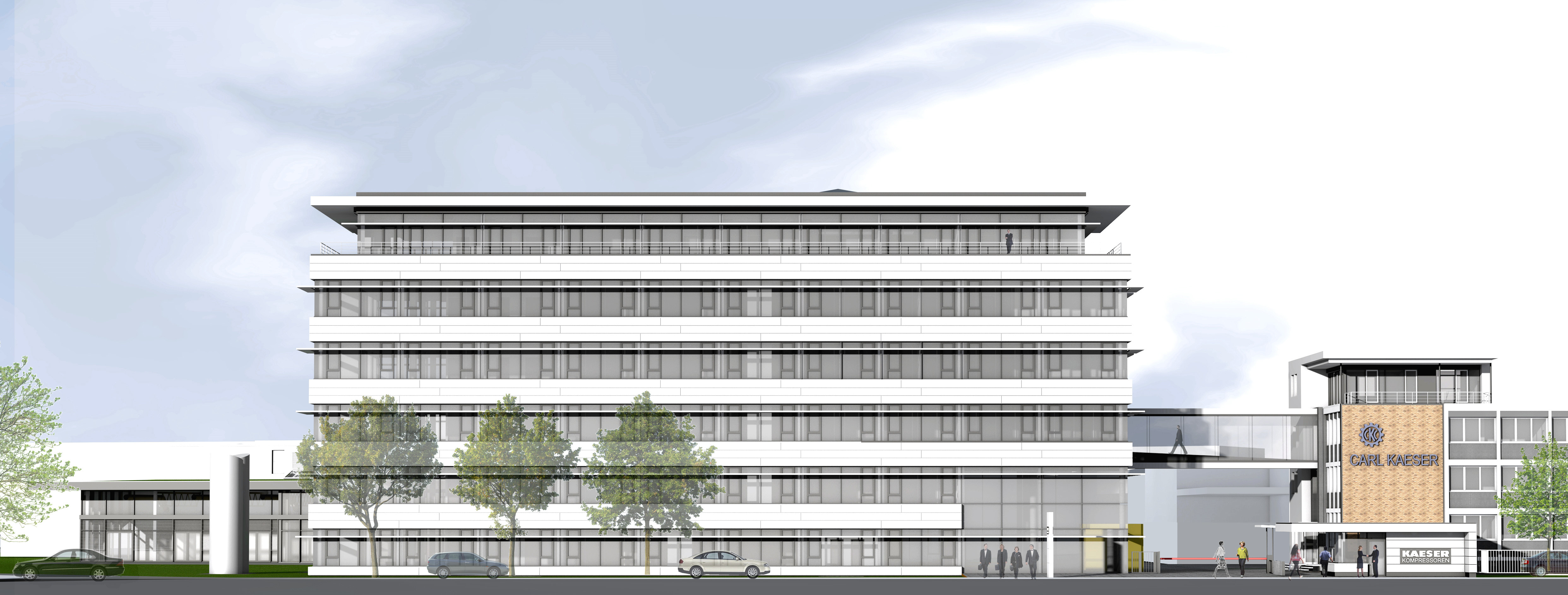 Kaeser Kompressoren’s new administration building will be located to the left of the existing building and will offer lots of new space for employees.